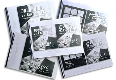 Deixe a criança se familiarizar com a estória encantadora e envolvente de Douradinho em Português. Depois apresente a estória em Inglês. A seguir apresente a variação dessa mesma estória em desenhos em preto e branco. Essa variação chamará a atenção da criança, reforçará a mensagem de forma nova e interessante.