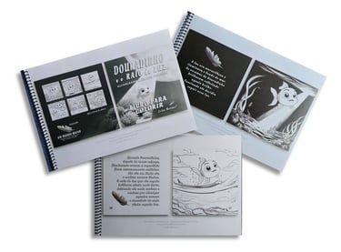 São atividades artísticas, de leitura e de escrita em português e inglês de assunto edificante através de uma estória inspirada repleta de simbologia que conduz a criança de forma leve e suave a descobrir a existência de seu
