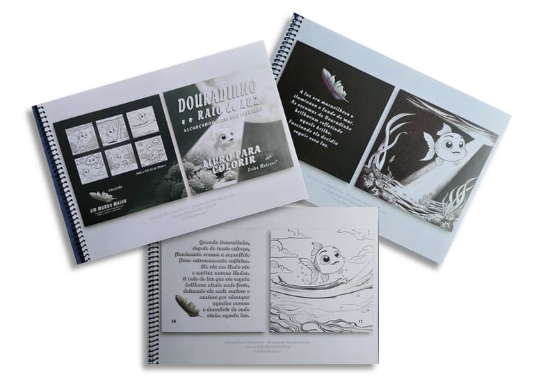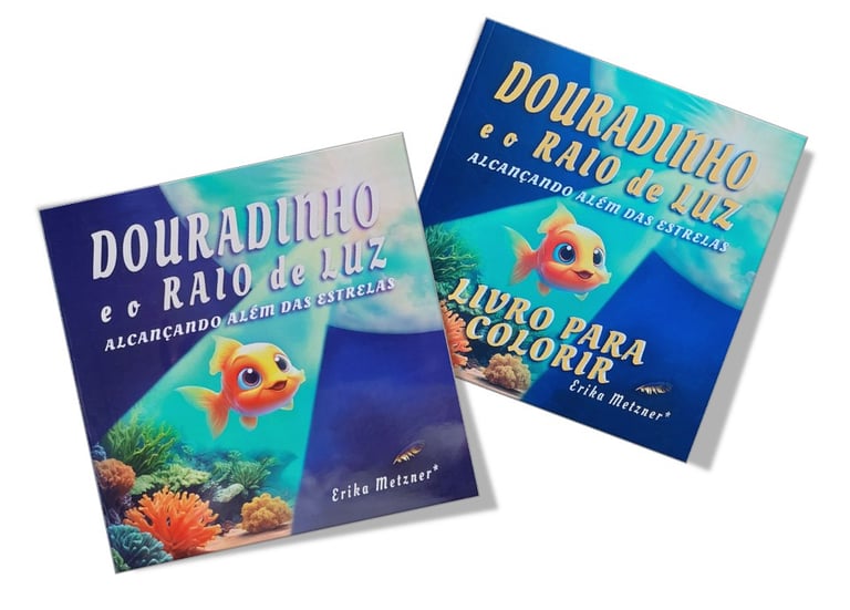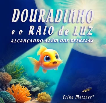 Douradinho é um peixinho dourado que se questiona se a vida é só aquela que ele conhece no fundo do mar escuro. Um dia ele percebe um raio de luz que o conduz a uma aventura emocionante. Através da aventura de Douradinho, as crianças aprendem de forma inspiradora e encantadora que a vida é misteriosa e mágica, que elas são muito especiais e parte de algo muito maior. Com coragem e curiosidade elas descobrem UM MUNDO MAIOR e encantador nessa nossa grande jornada chamada VIDA. As crianças aprendem que estando felizes em seus corações elas podem alçar voos mais altos ALCANÇANDO ALÉM DAS ESTRELAS iluminando a própria vida e ajudando a iluminar a vida de muitos ao seu redor.